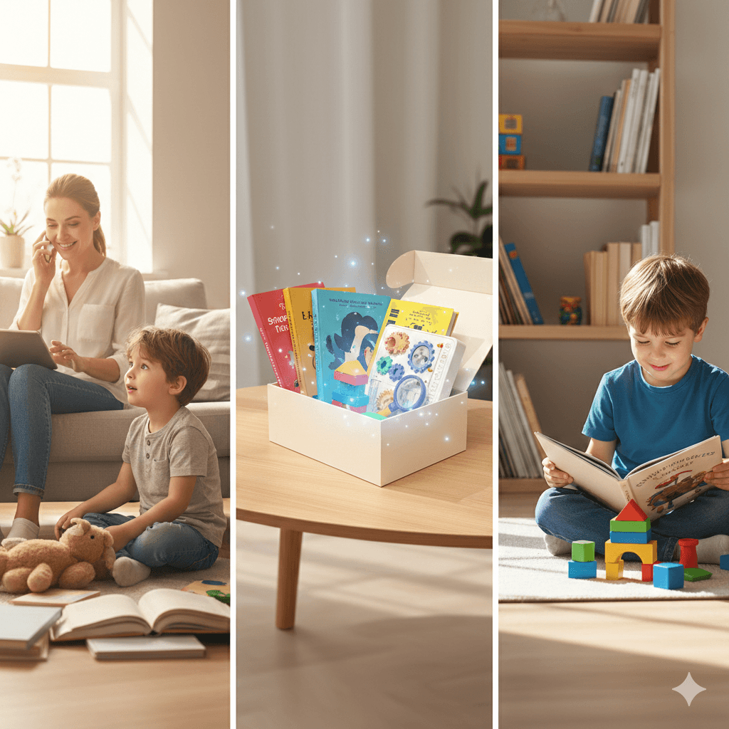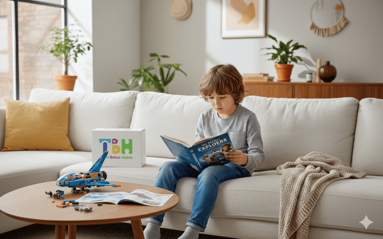 Each month, TBH delivers 4 age-appropriate books + 2 STEM / LEGO® toys, carefully curated by AI to match your child’s age, interests, and learning style — without clutter, screens, or overthinking.